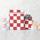 A wrapping paper designed with a dark red and white chequered pattern in large size. You can change the red for a different colour.