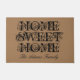 Custom doormat with family name Home Sweet Home. Add your own personalised surname. Vintage typography template with elegant script lettering. Big beige brown door mat design. Available in medium and large. Beautiful home decor gifts for friends, family, couple etc. Colours can be changed.