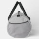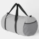 This large duffel bag is shown in a solid colour of light grey with black straps.