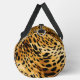 This large duffel bag is shown in cute leopard print with black colour accents.