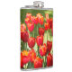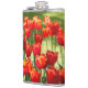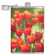 Large field of red tulips hip flask
