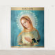 Flame of Love of the Immaculate Heart of Mary Icon with top and bottom gold band with logo on top. Teal bokeh background.