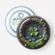 Circular piece featuring a large four-leaf clover surrounded by smaller clovers, set against a textured blue background. The circular frame has a vintage, metallic appearance with a weathered finish, creating a harmonious blend of nature and artistry.
