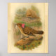 1879 vintage illustration of Large Frilled Bower Bird. With pink, brown and yellow feathers sitting on a rock holding a jaw bone in its beak.