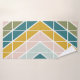 A fun large-scale pattern of triangles in rustic earth tones colours of mustard yellow, blush pink, forest green, and teal blue.