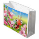 Custom design large glossy gift bag. This cute little ladybug, or ladybird, is being chased through the flower bed by friendly Snap Dragons.