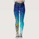 This striking pair of leggings has a large Chinese style golden dragon on the bottom right leg on a background of fading blue water swirls. The perfect leggings for those that compete in the sport of dragon boating or if you're just into dragons.