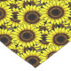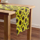Table runner in pattern of large golden yellow sunflowers, with deep chocolate brown centres, accented with black