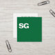 A square business card template with a simple clean design. A solid colour on the front with initials aligned to the left around 1/3 from the top. With name, profession/job title along with telephone, email and website address on the reverse side. This template is also a good starting point for further customisation.