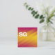 A square business card template with a simple clean design. A solid colour on the front with initials aligned to the left around 1/3 from the top. With name, profession/job title along with telephone, email and website address on the reverse side. This template is also a good starting point for further customisation.