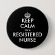 Small black and white keep calm i'm a registered nurse button. Create your own funny Keep calm and carry on parody for rn nurse, nursing school graduate, lpn, male nurse, nurse day etc. Vintage typography template with crown. Cute favour gift for caregivers. Also available in small and square shaped pins.
