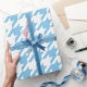 A wrapping paper designed with a light blue and white houndstooth pattern in large size. You can change the light blue for a different colour.