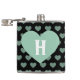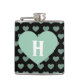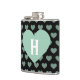 Large Light Green Heart & Black Background Hip Flask