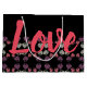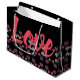 Stylish large gift bag, with a heart print in coral and purples, accented in black. The text can be personalised to any message, or text is removable. The black background can also be switched to any colour of your choice.