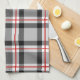 Large Modern Plaid, Black, White, Grey and Red Tea Towel