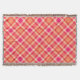 Throw in a large scale, retro modern plaid in shades of pastel to deep coral orange, coral pink, and deep fuchsia pink