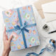 Large Pastel Watercolor Teapots on Blue Wrapping Paper