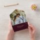 Introducing our classic all-in-one invitation which allows you to feature a treasured picture of your choice as the background for the majority of the inside of the invitation. This invitation is a simple grunge burgundy diamond patterned textured background with ivory text and is perfect for couples seeking a sleek, minimalist and classic aesthetic for their special day. Included is a traditional paper RSVP, with the all-in-one design, guests can easily tear away the RSVP section and send it back. Additionally, we've provided space for a website and email information for RSVPs, ensuring a seamless and convenient RSVP process. This template was created using a photo with a landscape orientation, and the customer, in all likelihood, will have an easier time with successful picture placement using a photo with a landscape orientation.