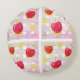 Make a statement with this larger-than-life cherry pillow. The vibrant pink cherries stand out beautifully against the soft pastel plaid background, creating a stunning focal piece for any room.