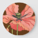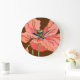 Large Pink Flower with Deep Red Background Clock