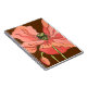 A large pink flower rests on a deep red background in this painting by Nancy Slocum. The flower is vibrant and in full bloom. A stunning gift for a special person in your life!