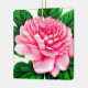 Large Pink Peony with Emerald Green Leaves Ceramic Ornament