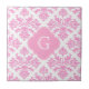 Large Pink White Floral Damask Pink Monogram Label Tile