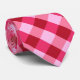 Tie in a large scale modern take on a classic buffalo plaid, in dark red, deep strawberry / fuchsia pink, pastel and medium soft pink
