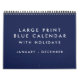 Large Print Blank Blue Calendar With Holidays