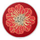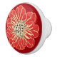 Knob in a large, red, camellia flower, in an Art Nouveau inspired style, on a deep red background