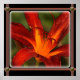 this large red cinnamon day lily makes a graphic statement. from a close up photo that has been slightly altered with a digital watercolor effect.