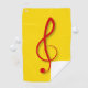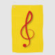 This design features a large red musical treble clef symbol on a yellow coloured background.