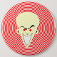 Large (size can be customised smaller) retro comic-toon Optical Illusion Hypnotizer guy pin/button.