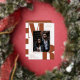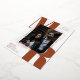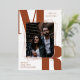 Modern typography save the date flat card with your photo in the middle, in a geometrical rose gold foil frame. Beneath, your initials in large bold rust brown letters. Add names and additional information in elegant rose gold foil fonts. The back features chic broad stripes.