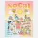 Bright and colourful scene offers a spectacular view of Southern California - wacky characters frolic on the beach and desert of SoCal showcasing Los Angeles, Orange County, San Diego, Santa Barbara, Riverside, Palm Springs, El Centro, Salton Sea, Anza Borrego and Joshua Tree parks as well as the border cities of Tijuana, Tecate and Mexicali. This charming scene has it all – a surfer hangs ten while a killer whale leaps out of the water, zoo animals greet the tourists, wine lovers make a toast as a hiker is noticed by a UFO and much more…