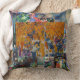 a large throw pillow with intricate abstract collage containing details of a joan mitchell painting. brilliant, vibrant and dramatic. there is a paul klee fragment as well. these masterworks lend strength and beauty to the collage.