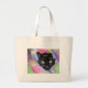 Funny black cat wrapped in blankets with just the head showing out on a large tote bag.