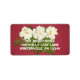 These larger sized return address illustrations feature a bold photo illustration of three white carnation flowers and some green leaves against a festive red background with your own name and address in white. These labels coordinate with our Merry Christmas Flower Typography holiday cards but are fun and colourful enough for year-round use.