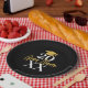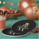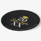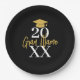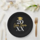 A modern black and gold plate with a gold grad cap and bold text with a theme. A great graduation party decor addition to celebrate the graduate. Personalise with a name and date.