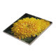 Ceramic tile that features the photo image of a large, yellow Chrysanthemums, otherwise known as Mum Flowers. A lovely, floral design! Select your tile size. Makes a great kitchen trivet!