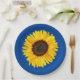 Large, cheery, yellow, wild sunflower centred on a blue background.
