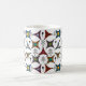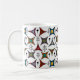 This mug has a mid-century modern design of four-point and three-point stars in retro colours.