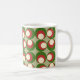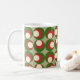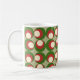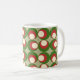 This mug has a Christmas mid-century modern design of three circles layered atop each other; one green, one red, and one white. Each circle is then turned 90 degrees to make a square of circles. Like the design but want other colours? Message me.