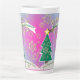 Larger Snowy Purple Christmas Tree Scene Latte Mug