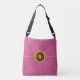Crossbody Bag pink front black back with brown and gold Y-NOT-ME logo in front, with gold horizontal and vertical lines behind it and with "GO AHEAD-YOU CAN DO IT" at the top front also with "WHY NOT ME IS ALMOST ALWAYS A VALID QUESTION" and Y-NOT-ME logo on the back. This design is an encouragement to all, don`t be afraid, just do the best you can. Try to enjoy what you do, stick with it.