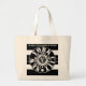 Jumbo Tote natural with black front and with black and white concentric-circles design with "NEW YORK CITY CENTER OF THE UNIVERSE" over black and white rectangle and with "NO MORE PLASTIC DEBRIS-IN THE NYC" at the top. This design is a shout-out to perhaps the greatest city in the world, New York City, New York. Let`s not let plastic waste ruin our wonderful city.