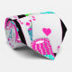 This version of the tie is done in neon colours pink, blue and green with a black background.