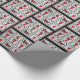 This gift wrapping paper has a design that is made to look like the front of a slot machine showing a winning row of 7's.