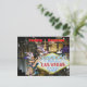 Fun family reunion announcement / invitation for Las Vegas celebrations. Night time aerial view of Las Vegas Boulevard and retro style showgirl art. Easy to personalise templates.
