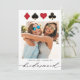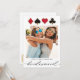 Elegant, modern photo Bridesmaid proposal invitation. Perfect for Las Vegas Destination wedding. Design features single photo, will you be my bridesmaid script , gold, clubs , diamonds , hearts and spades icons in gold elegant frame on the front and Las Vegas city skyline in gold on the back.